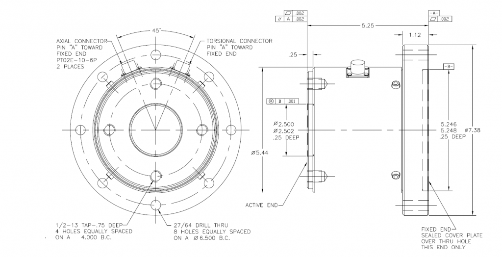 2500 in-lbs (Mz) / 2500 lbs (Fz)